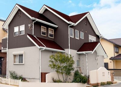 外壁を2色以上にする場合は、同系色にすると落ち着きます。仮にホワイト系でも同系色のホワイトを選ぶと良いでしょう。